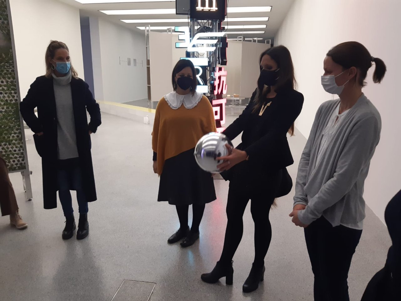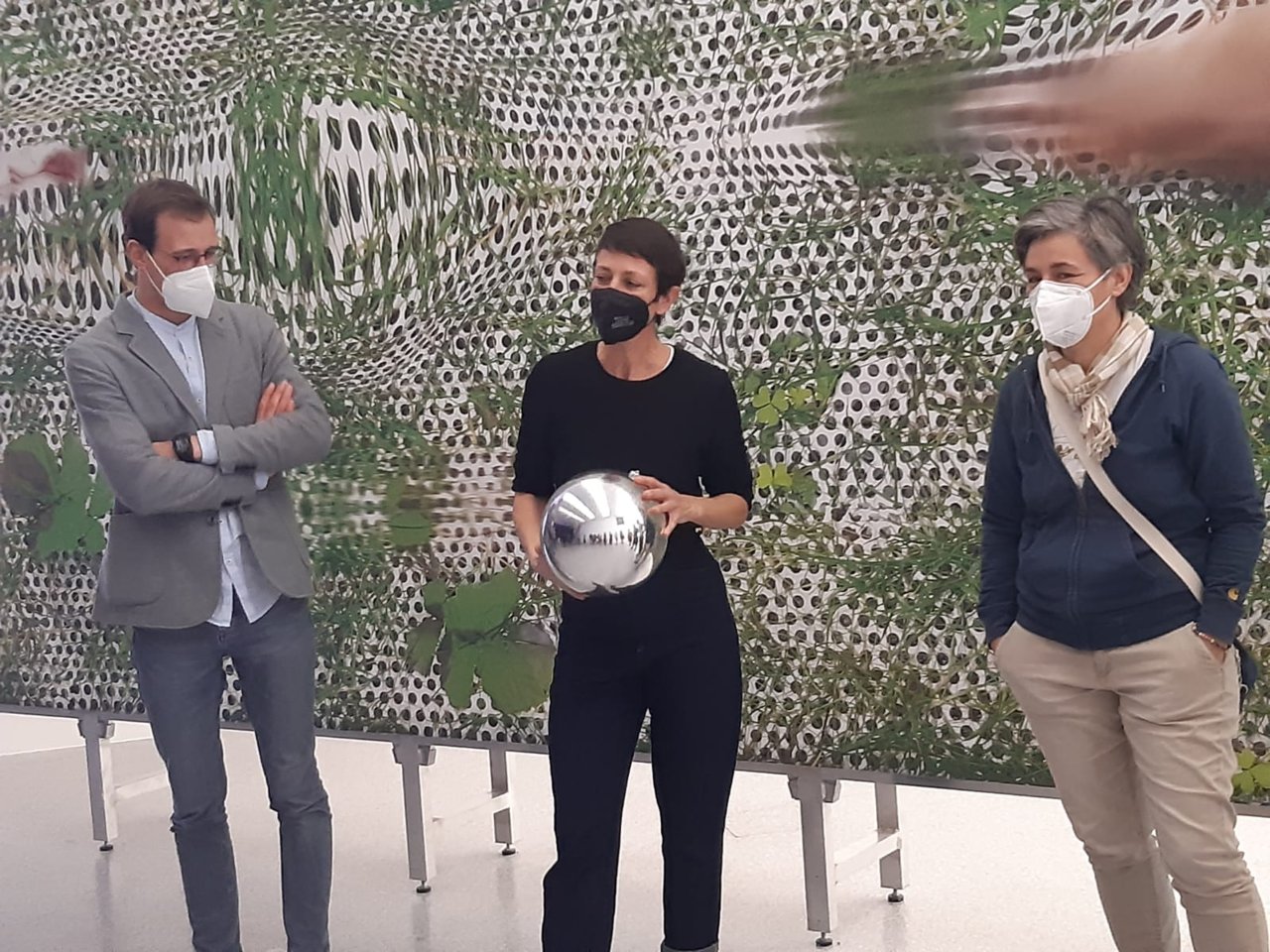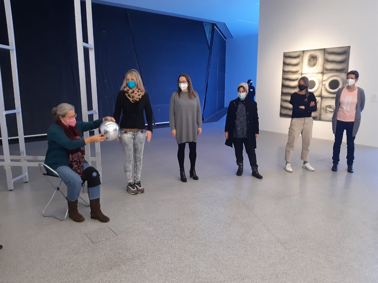 Das non-verbale Reihum-Weiterreichen einer silbernen Spiegelkugel zeigte, dass wir alle und alles jederzeit zugleich im Ganzen Runden stecken – was schön es, denn wir sind nie allein. Was bedrückend ist, denn wir sehen uns verzerrt und nie als einziges Individuum.