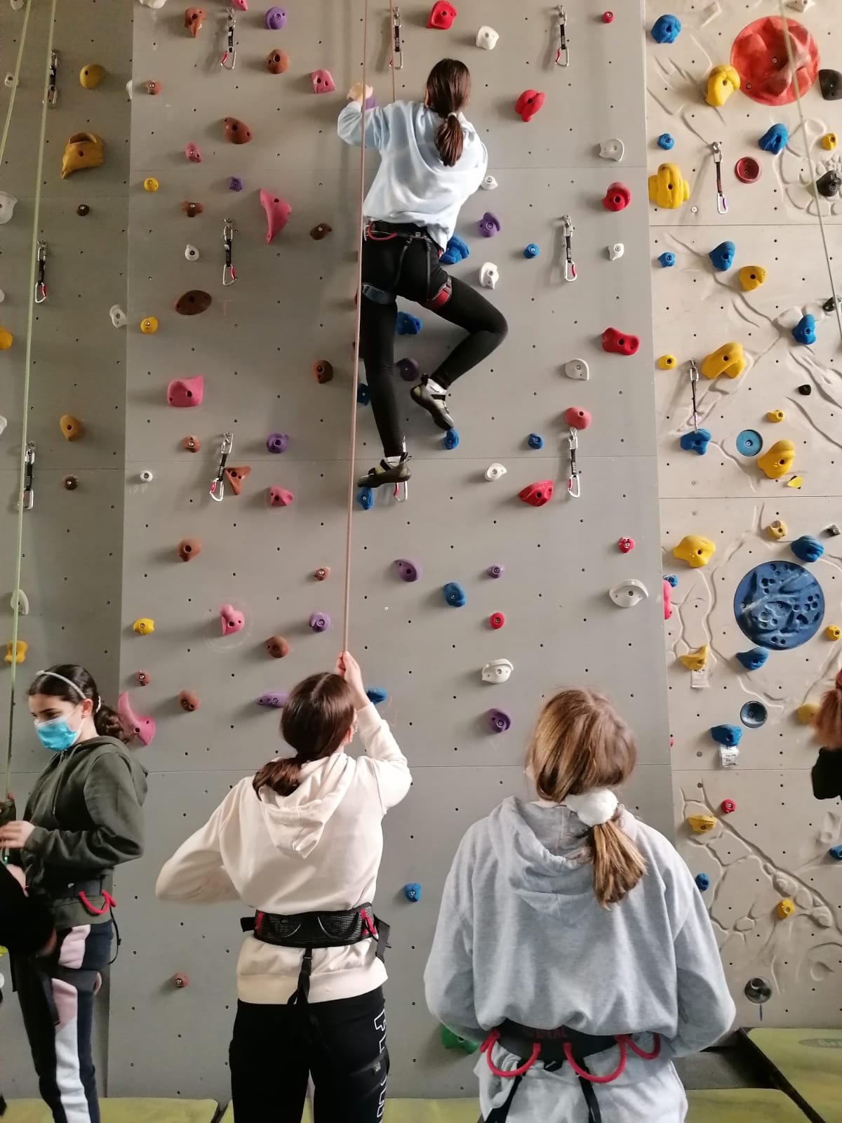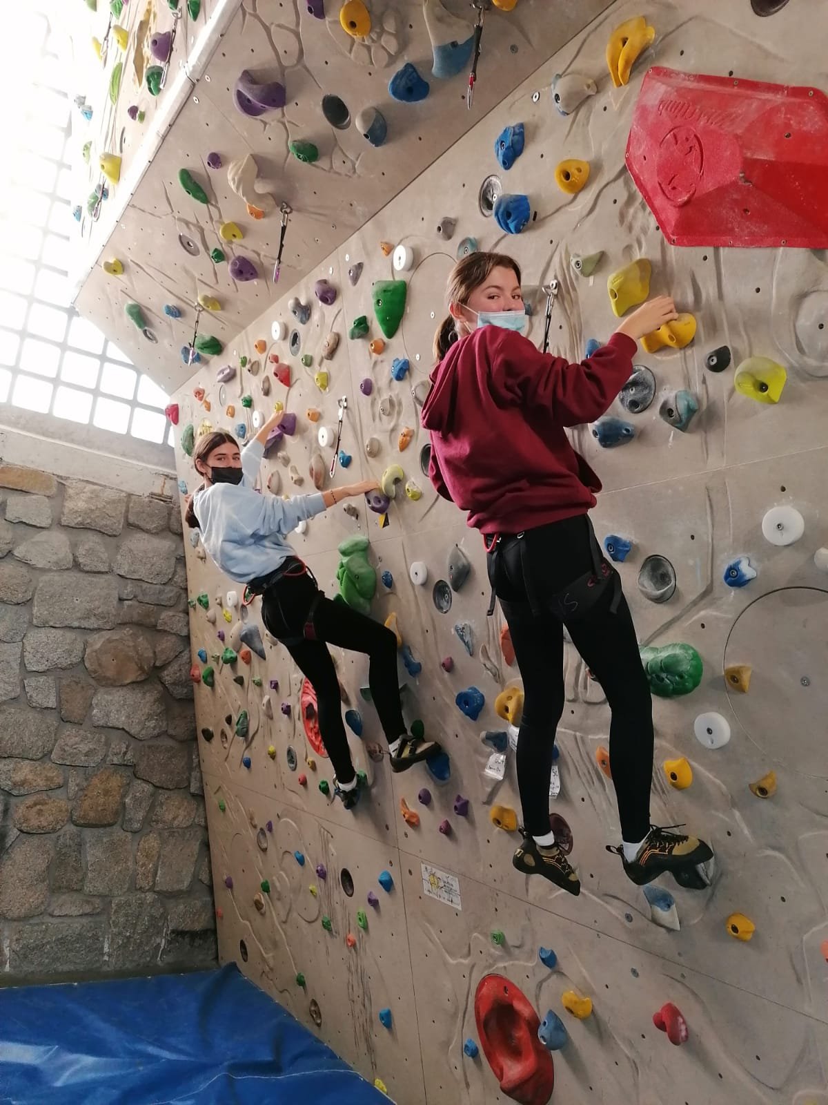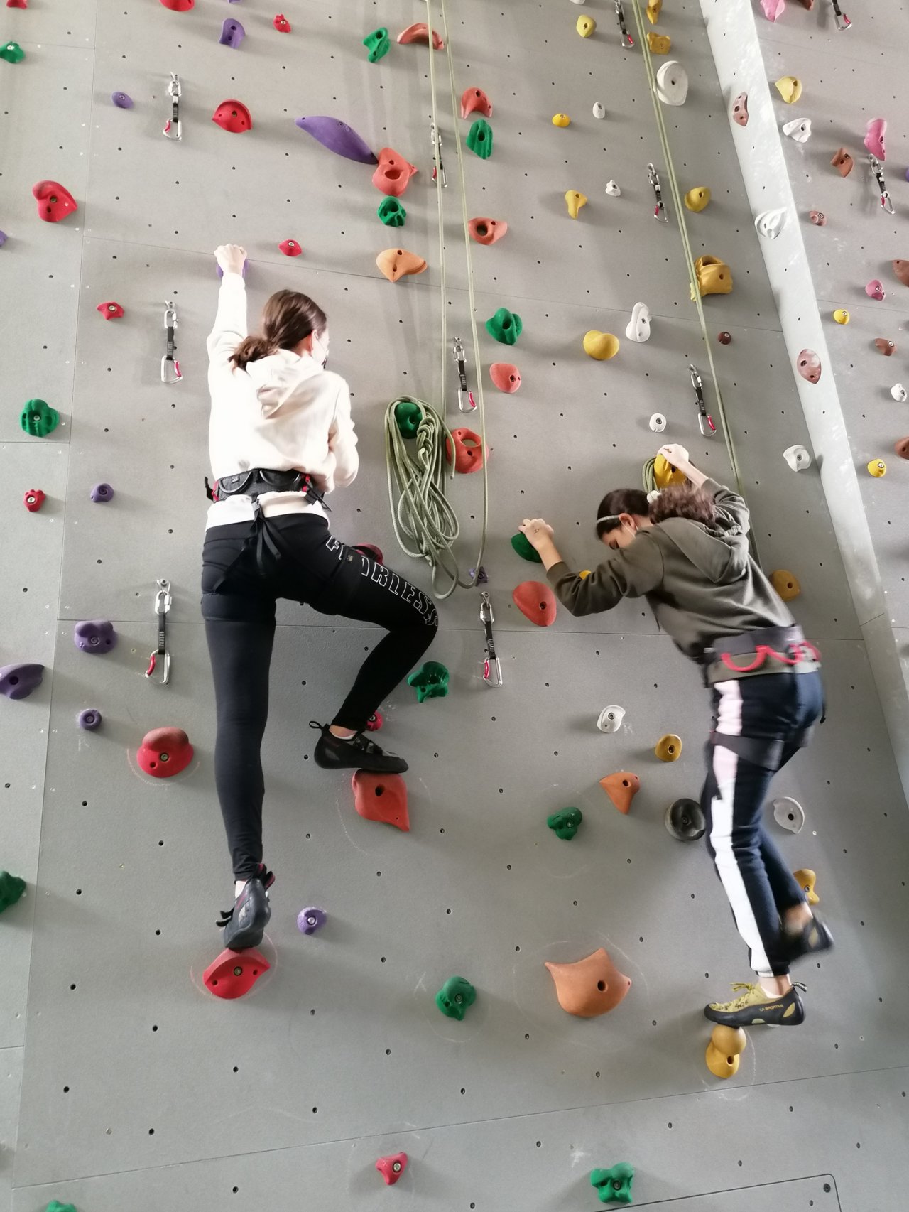 Die Schülerïnnen waren mit großer Begeisterung dabei und überraschten durch ihren Mut und ihr großes Geschick an der Kletterwand. Die zertifizierte Kletterlehrerin Esther Kuhn und die Sportlehrerin Isabella Rohrbacher begleiteten die erste Klasse.