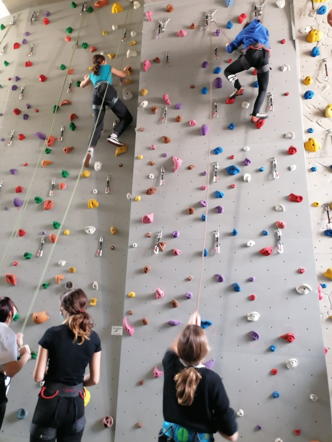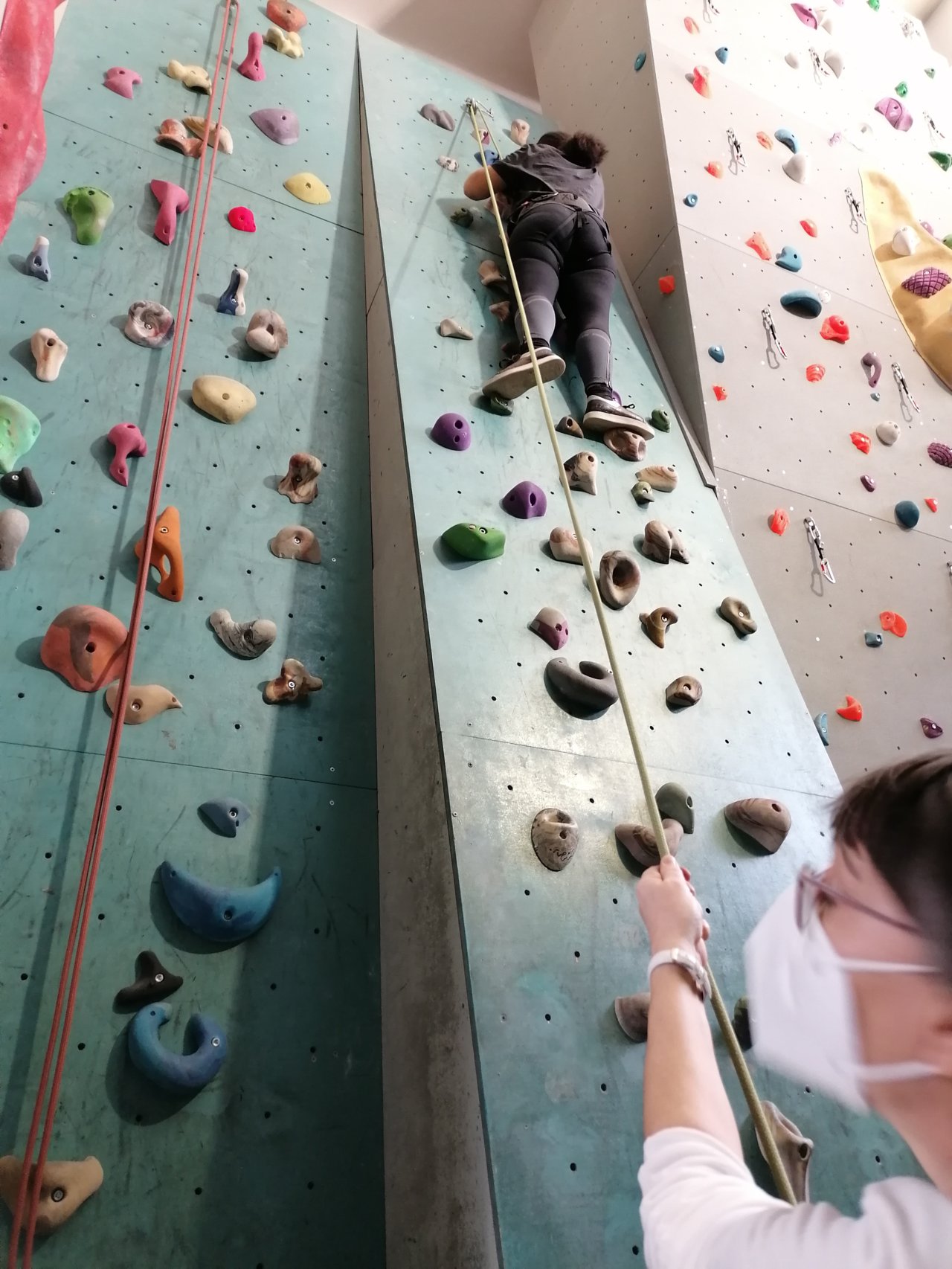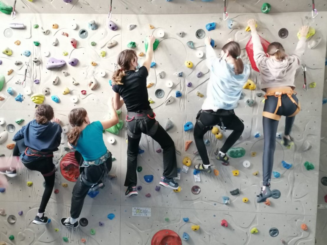 Die Schülerïnnen waren mit großer Begeisterung dabei und überraschten durch ihren Mut und ihr großes Geschick an der Kletterwand. Die zertifizierte Kletterlehrerin Esther Kuhn und die Sportlehrerin Isabella Rohrbacher begleiteten die erste Klasse.