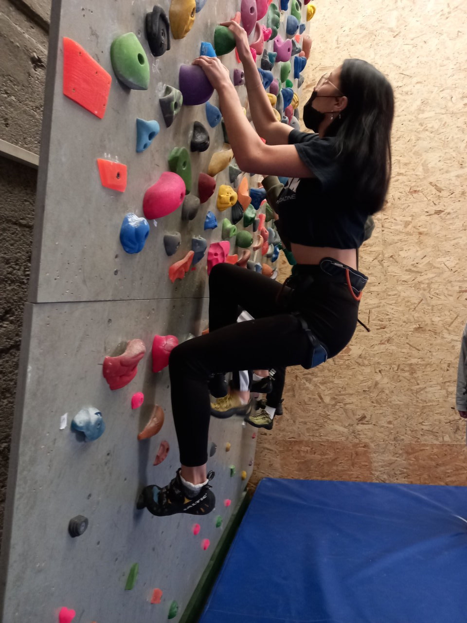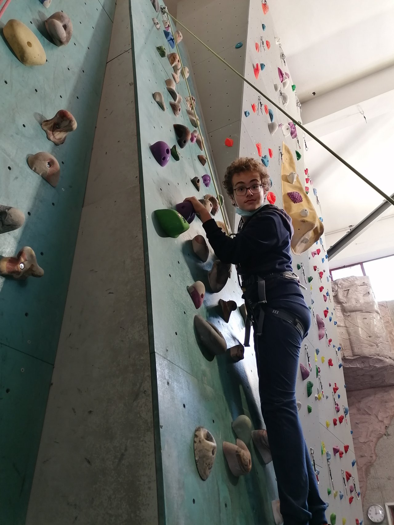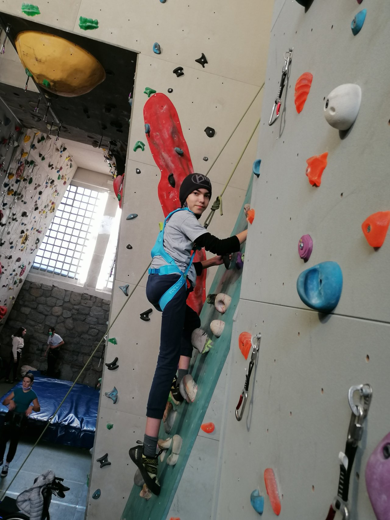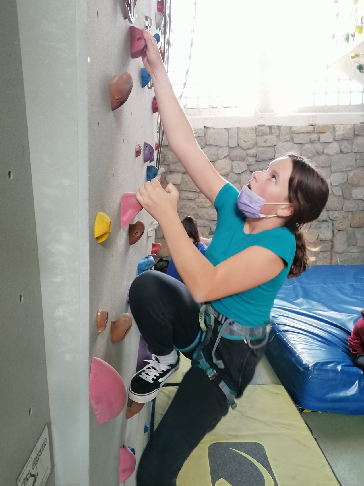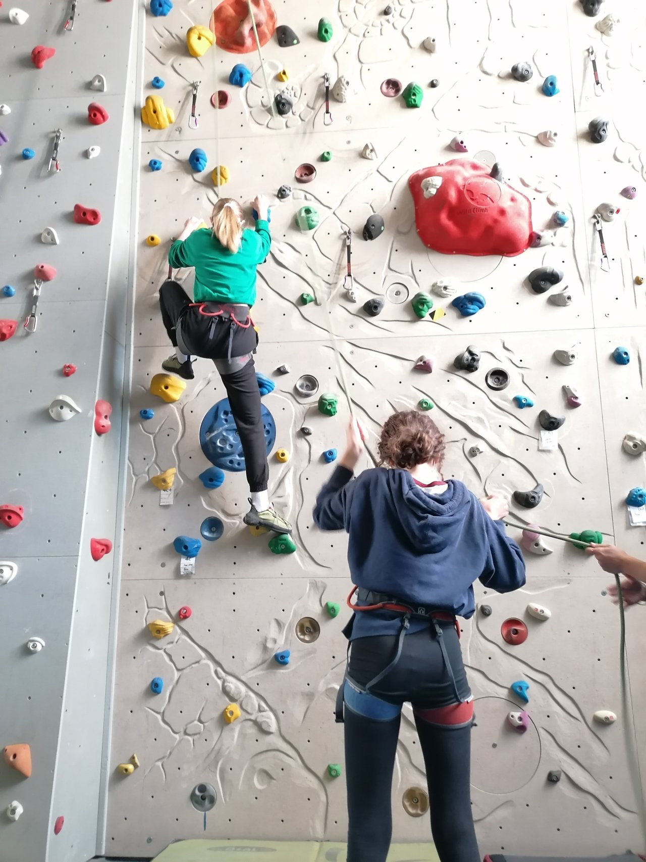 Nach einer Aufwärmphase versuchten die Mädchen und Jungs kurze „Boulderprobleme“ zu lösen, um dann – ausgerüstet mit Gurt, Seil und Sicherungsgerät – längere Routen anzugehen. Hoch hinauf sollte es gehen; die Jugendlichen wollten Höhen erklimmen.