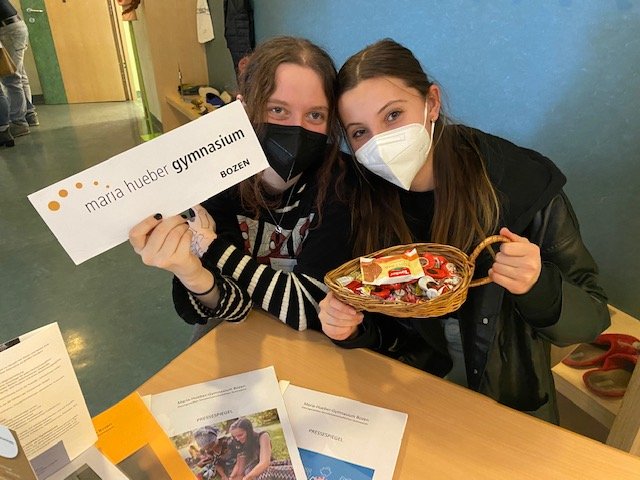 Am 10. Dezember waren Schülerinnen der 3. Klasse zu Gast in der Mittelschule Sarnthein und informierten die Mittelschülerïnnen über das Schulleben am Maria-Hueber-Gymnasium. Wir sind die gute Alternative für die großen Schulen, persönlich, nahe und kompetent.