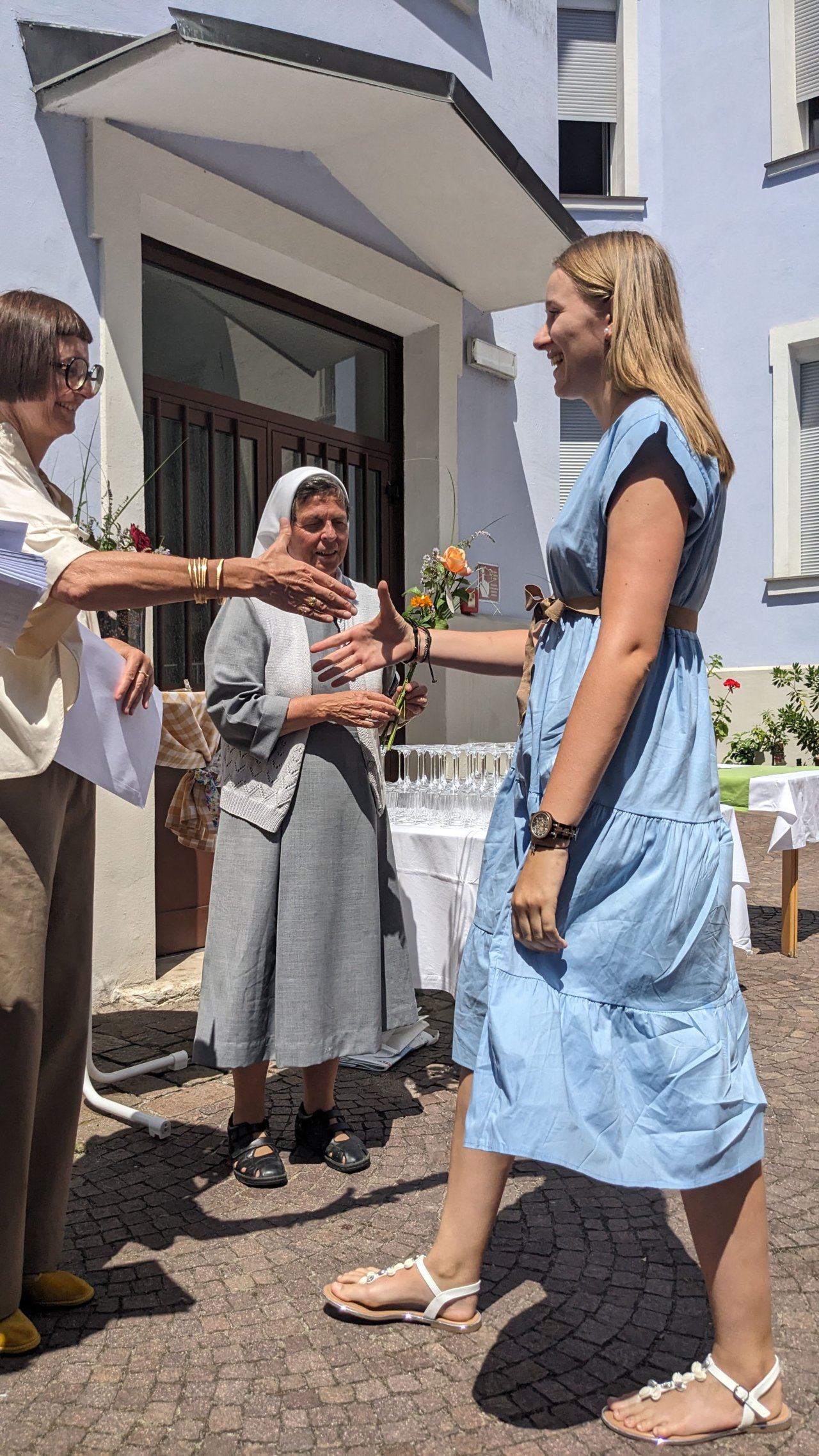 Direktorin Heidi Hintner, Kommissionspräsidentin Barbara Tengg und Provinzoberin Sr. Mirjam Volgger überreichten die Diplome und eine Bozner Duftrose.