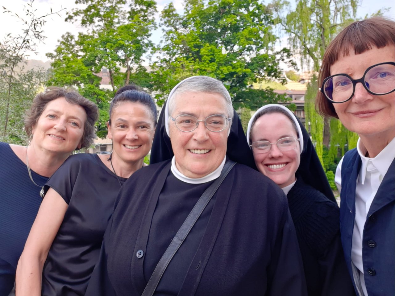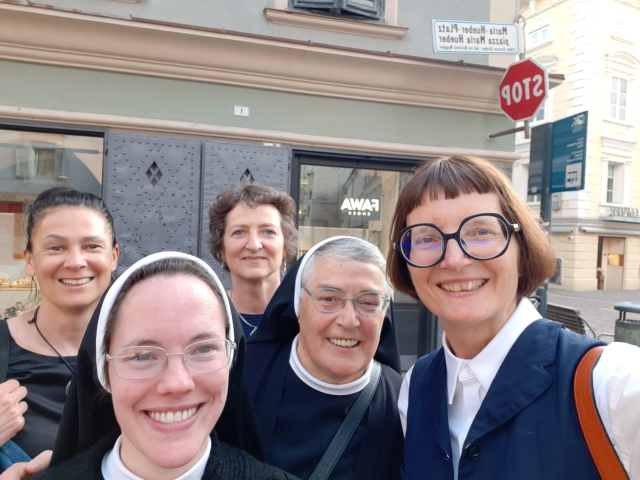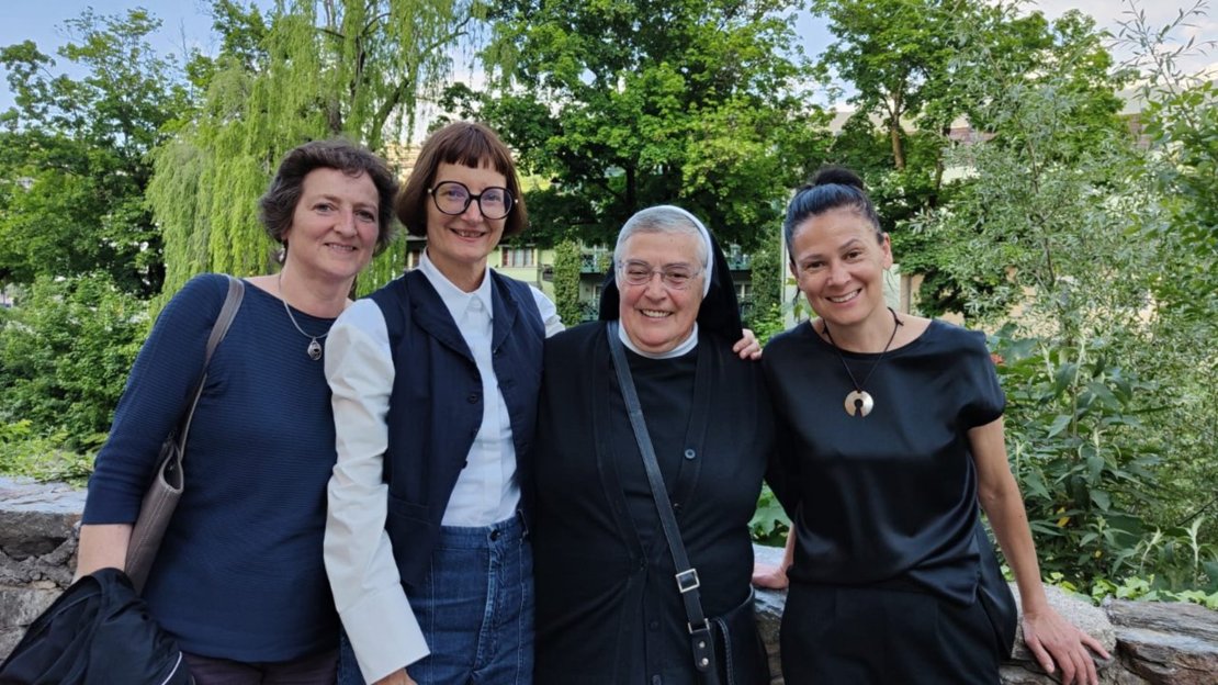Zum 370. Geburtstag von Maria Hueber am 22. Mai 2023 trafen sich Sr. Klara Rieder, frühere Direktorin des Maria-Hueber-Gymnasiums, Sr. Anna Elisabeth sowie die Direktorinnen Heidi Hintner mit Schulsekretärin Andrea Mayrl (seit 30 Jahren im Amt) und Monika Schwingshackl zum Austausch und zum Feiern.
