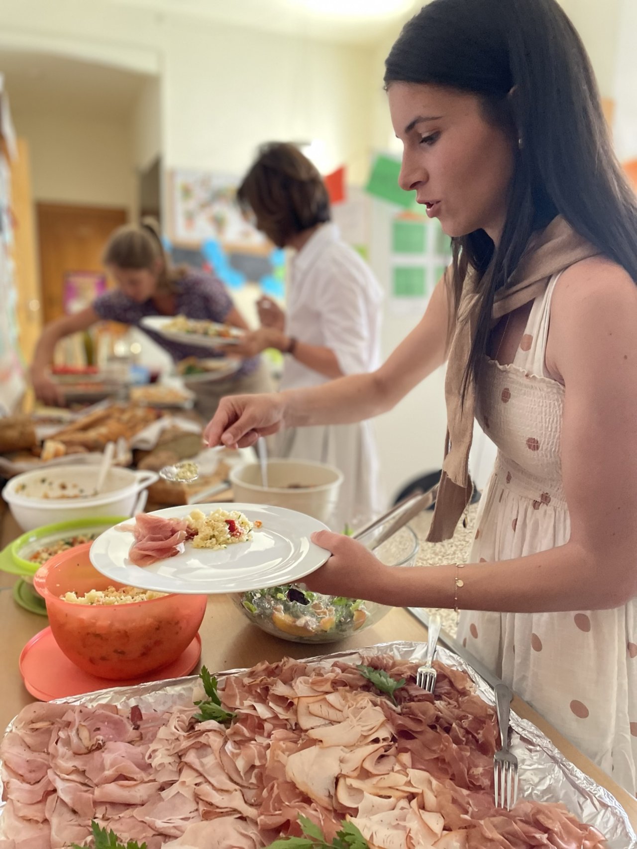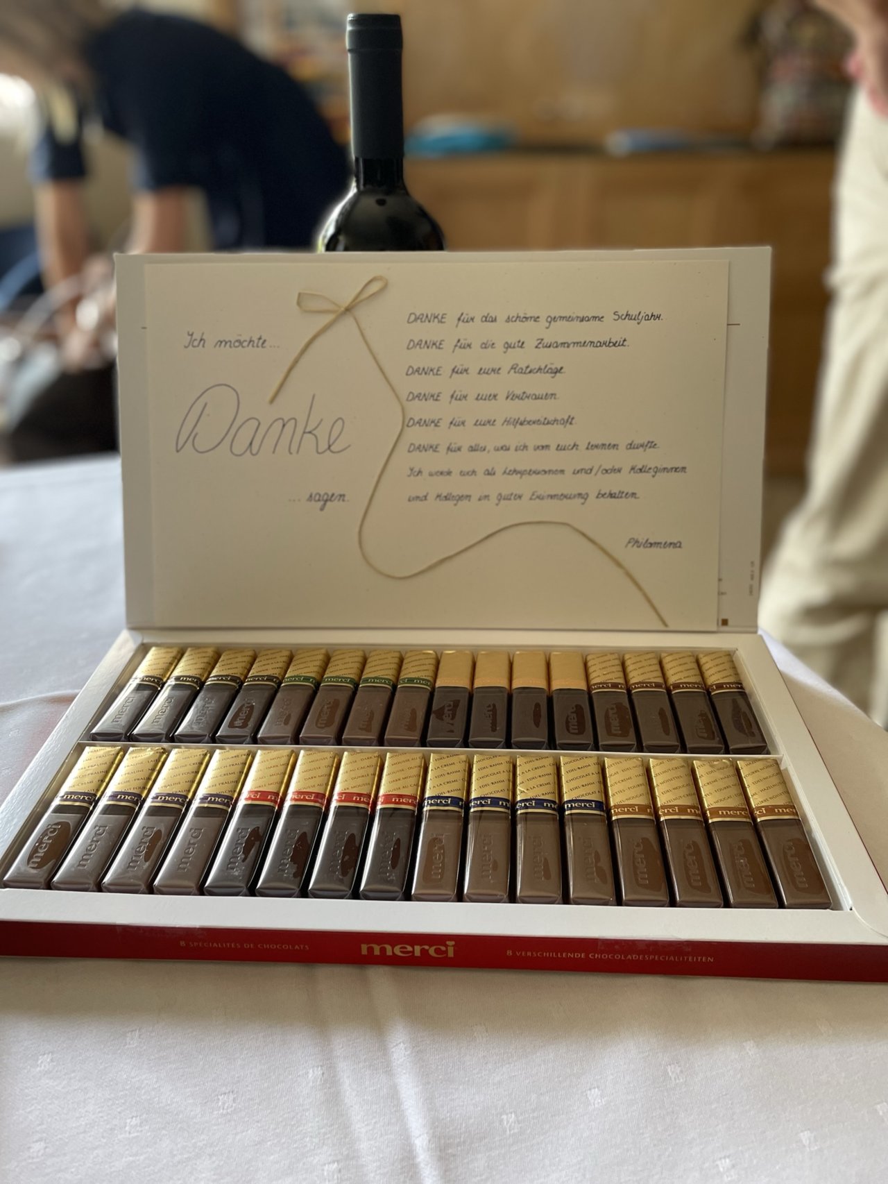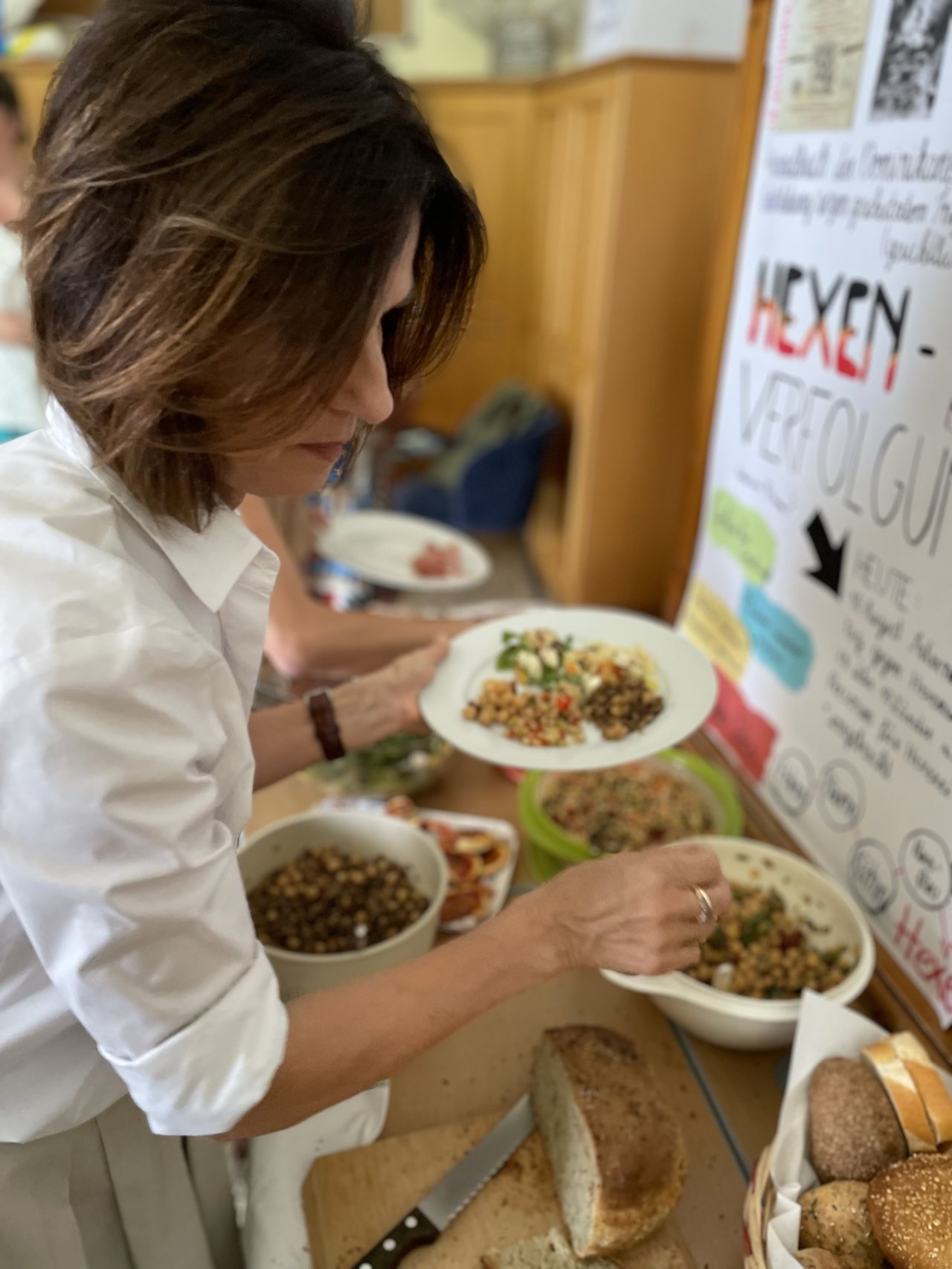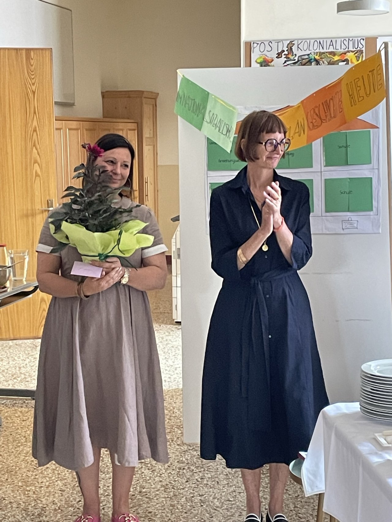 Nach den Abschlusskonferenzen verwandelten wir die Klassenräume in ein Restaurant: schöne Atmosphäre, chillige Musik, köstliches und selbst zubereitetes Essen, ein gutes Glas Wein dazu und die Gesellschaft der Kolleginnen und Kollegen.