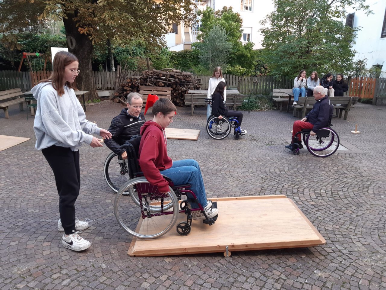 Kürzlich fand am Bozner Maria-Hueber-Gymnasium ein ganz besonderes Projekt statt: Die Schule lud die Sozialgenossenschaft „HandiCar“ ein, um anhand eines Rollstuhl-Parcours am eigenen Körper zu erleben, mit welchen Problemen körperlich beeinträchtigte Menschen täglich zu kämpfen haben.