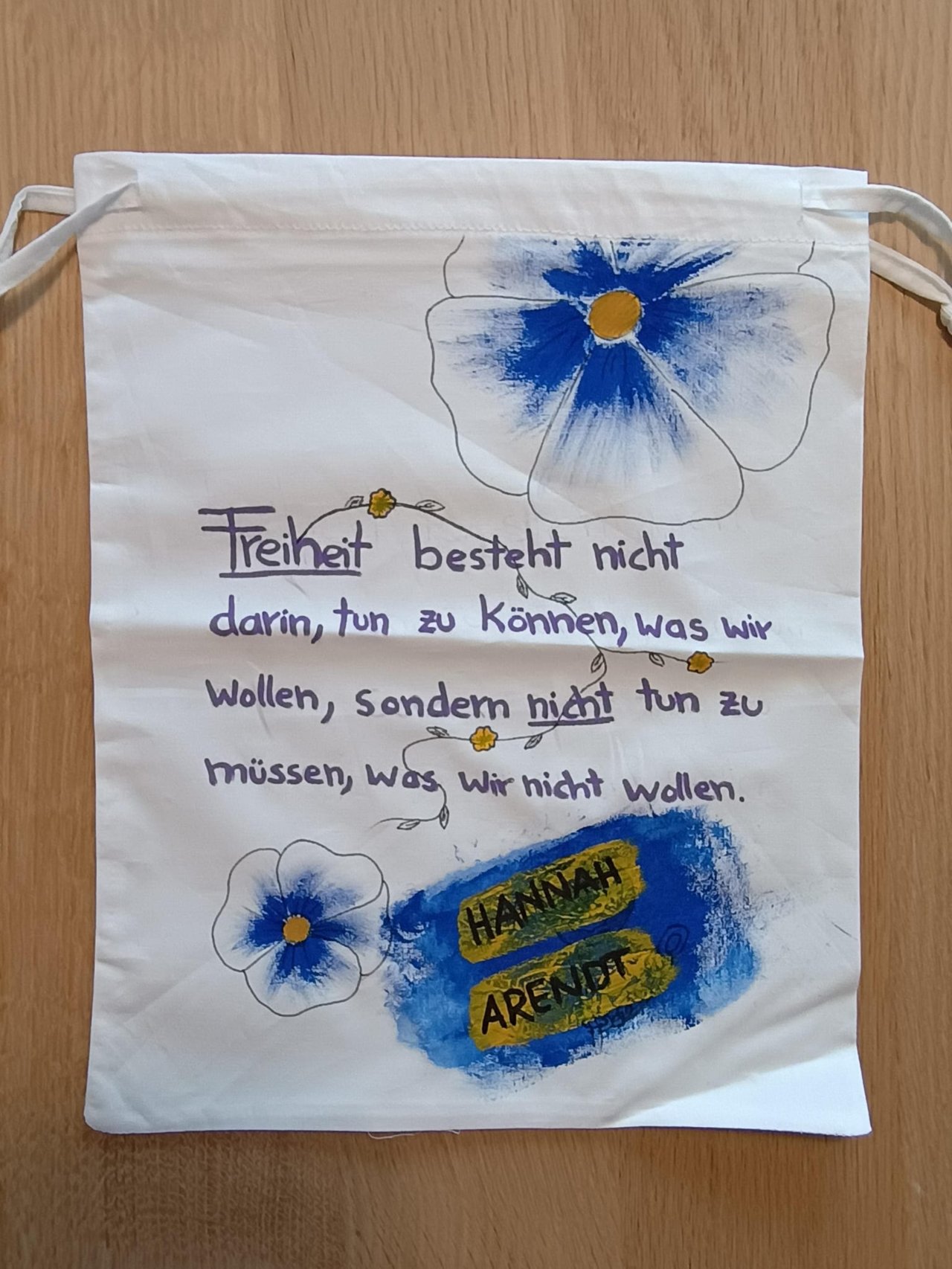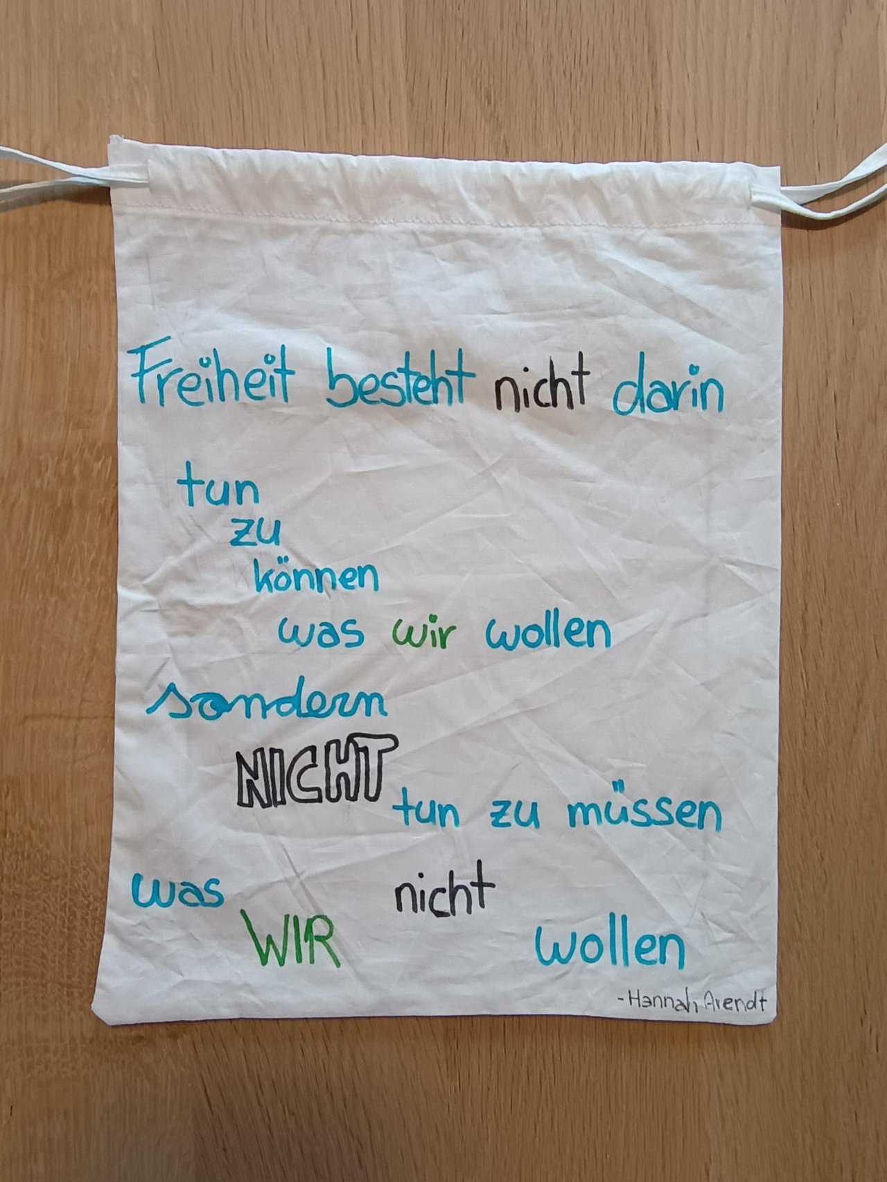 Die Aufgabensammlungen machten neugierig und ermöglichten freie Denkräume „ohne Geländer“. Aus verschiedenen Arbeitsanregungen sollten die Schülerinnen und Schüler eine für sie angemessene Anzahl an Aufgaben aussuchen, die im Anspruchsniveau und in ihrem Umfang unterschiedlich waren. Dadurch waren Differenzierungen in der Klasse möglich. Einige Aufgaben waren Pflichtprogramm wie z.B. die Gestaltung einer Buchtasche.