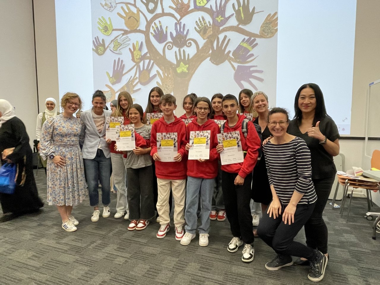 Die Jugendlichen erforschten auf fantasievolle und kritische Weise diese zentralen Themen unserer Zeit und brachten ihre Erkenntnisse in beeindruckenden Kurzfilmen zum Ausdruck. Die vier Filme der Südtiroler Schülerinnen und Schüler erzählten lebendige, mehrsprachige Geschichten. Sie zeigten bedeutungsvolle Aktionen und veranschaulichten, wie Kinder und Jugendliche kreative Wege finden, Konflikte zu lösen, Hoffnung zu schöpfen und generationsübergreifende Freundschaften aufzubauen. Diese Werke waren Teil der insgesamt 19 Kurzfilme, die im Rahmen des Festivals in 19 verschiedenen Sprachen präsentiert wurden. Olga Kmit und Brett Hodges vom Maria-Hueber-Gymnasium sowie Elfi Troi in Mühlbach arbeiteten intensiv mit den Jugendlichen. Die Direktorinnen Heidi Hintner (Bozen) und Monika Schwingshackl (Mühlbach) setzen immer wieder besondere Akzente und führen die Privatschulen mit viel Einsatz und Professionalität. Judith Rifeser aus Südtirol, die in London lebt und arbeitet und für das multilinguale digitale Storytelling-Projekt „Critical Connections“ als Co-Direktorin mitverantwortlich ist, hat den Aufenthalt der Südtiroler Jugendlichen organisiert und begleitet und das Projekt mitgetragen. Sie ist die Schwester der Kirchenhistorikerin und Maria-Hueber-Expertin Sr. Anna Elisabeth Rifeser.