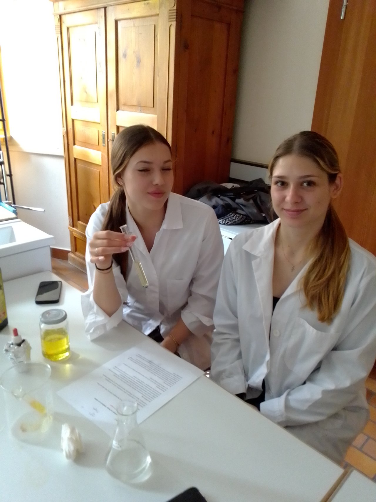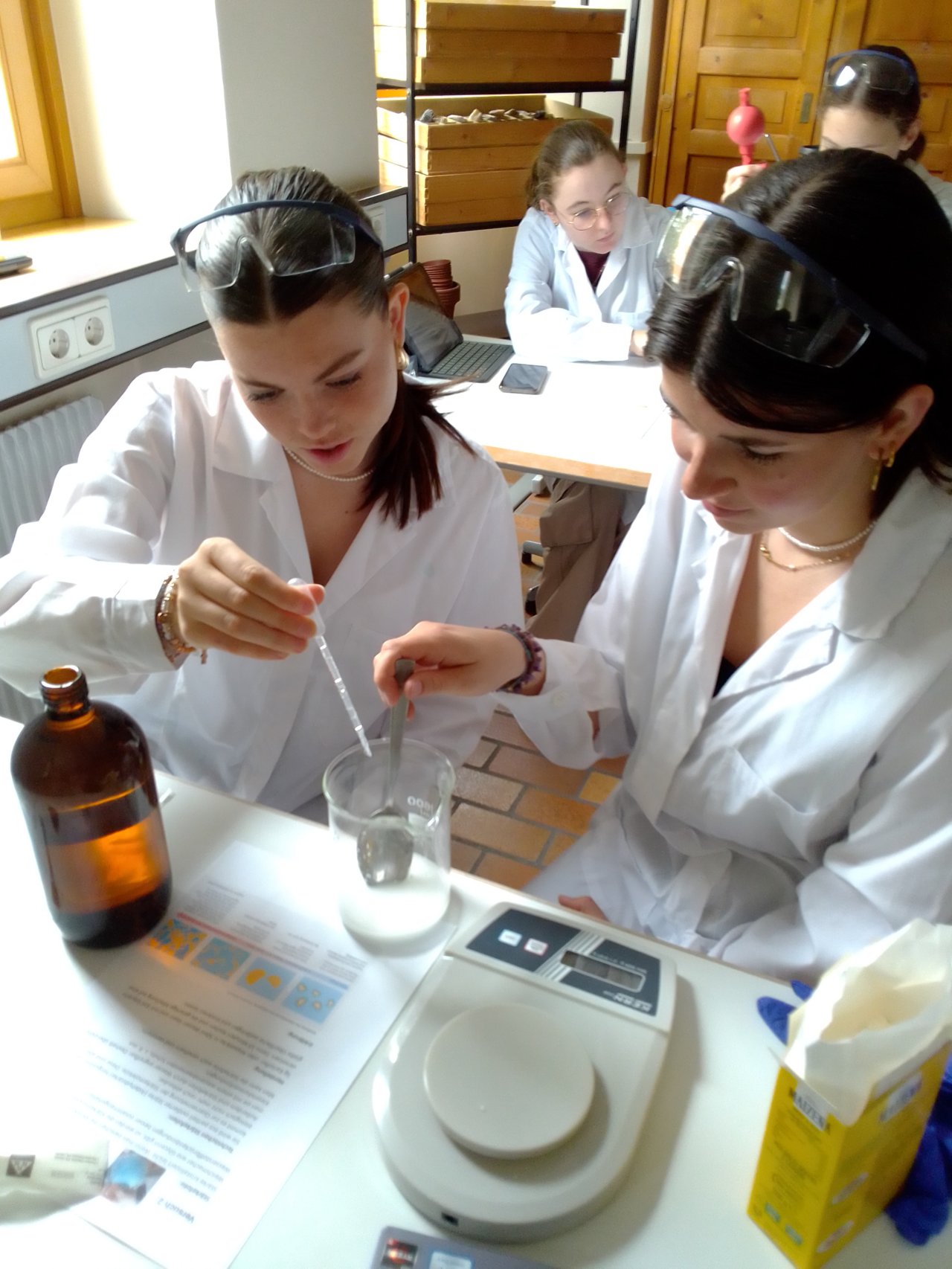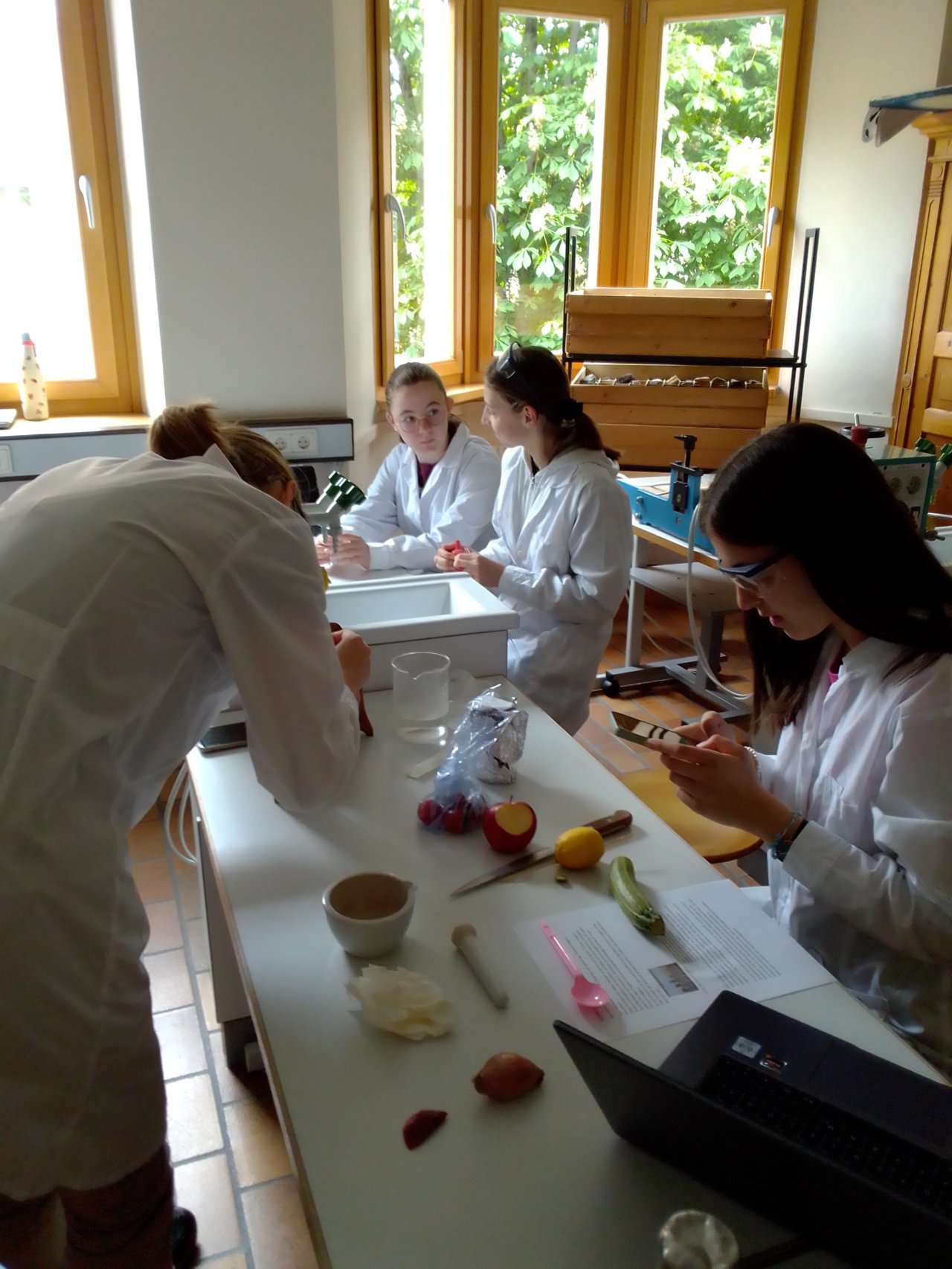Um einen besseren Einblick in die Praxis der Chemie zu bekommen, untersuchte die 4.Klasse verschiedene Lebensmittel auf die Anwesenheit von Kohlenhydraten, Fetten, Eiweißen, Vitaminen und Mineralien wie Phosphat.