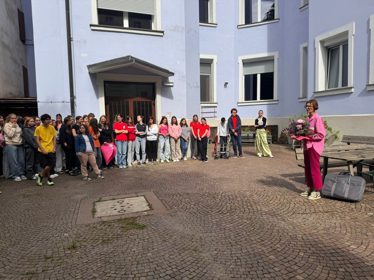 Schülerinnen und Schüler verabschieden sich von Direktorin Heidi Hintner