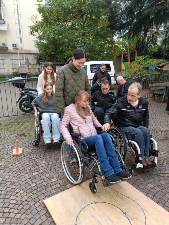 Kleine Stufen, Türen und Rampen, die im Alltag oft selbstverständlich erscheinen, wurden hier zu echten Heraus-forderungen. Was von außen einfach wirkt, erforderte Geschicklichkeit, Kraft und oft mehrere Anläufe. Durch dieses praktische Erleben konnten die Schüler*innen nachempfinden, welche Hürden rollstuhlfahrende Menschen täglich bewältigen müssen. Im Anschluss reflektierten sie gemeinsam mit Werner Schwienbacher ihre Erfahrungen, diskutierten Fragen und setzten sich so noch intensiver mit der Thematik der Barrierefreiheit auseinander.