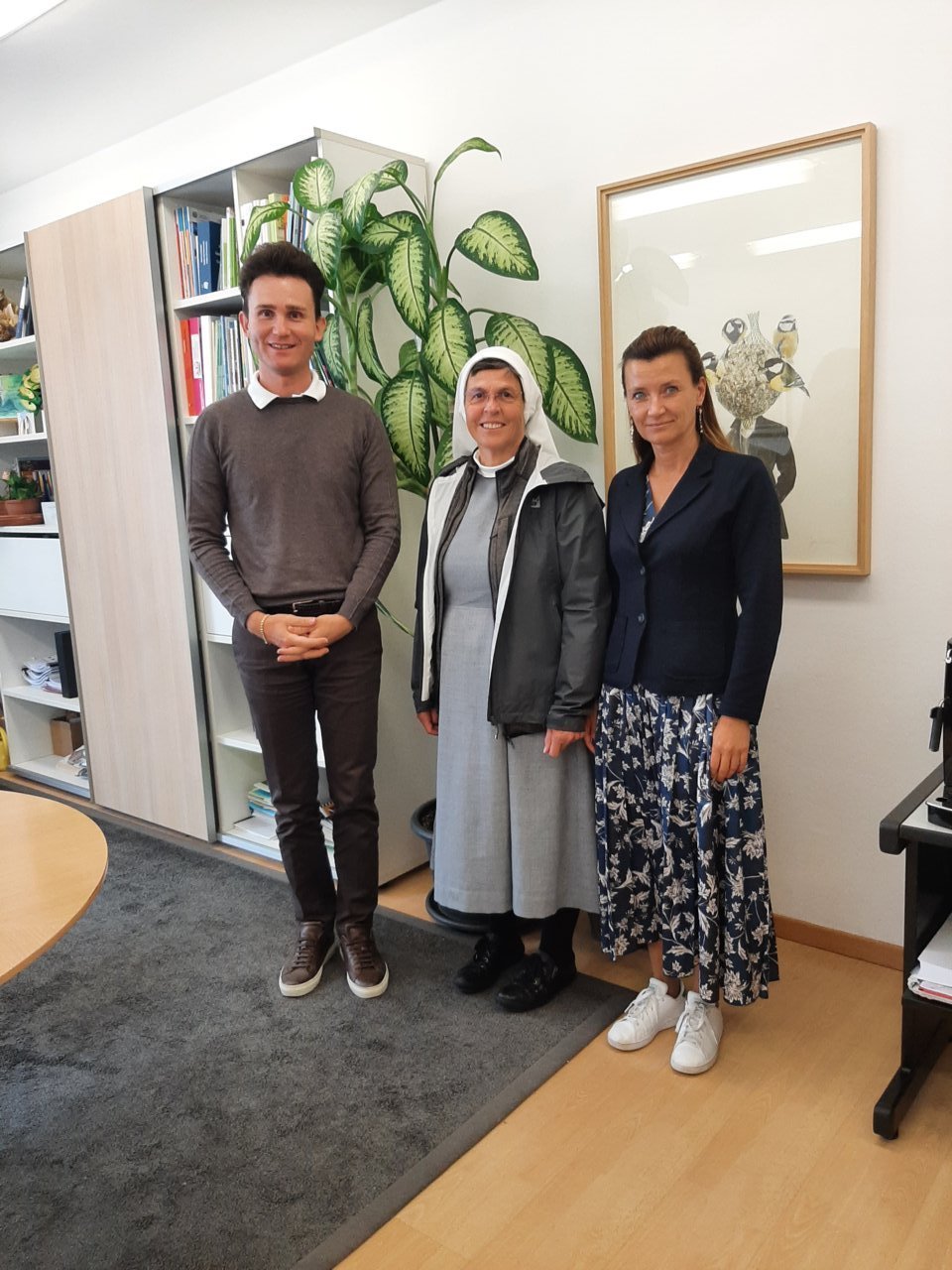 Der neue Direktor des Maria-Hueber-Gymnasiums, Manuel Raffin und die Provinzoberin der Tertiarschwestern, Sr. Mirjam Volgger, auf Antrittsbesuch bei Landesschuldirektorin Sigrun Falkensteiner
