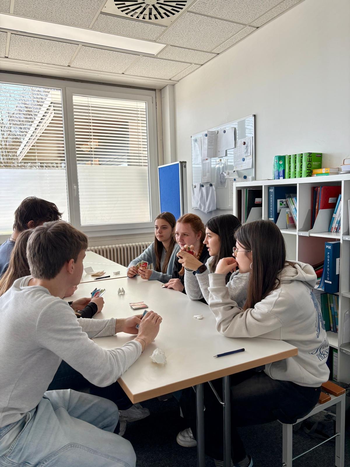 Im Rahmen eines Schüler*innenaustauschs ist die 3. Klasse am Sonntagmorgen nach Esslingen gefahren. Am Montagvormittag wurden die Schülerinnen und Schüler an der Partnerschule " Privates Gymnasium Esslingen" mit Kennenlernspielen herzlich empfangen. Die gemeinsame Zeit diente dazu, erste Kontakte zu knüpfen und sich in lockerer Atmosphäre auszutauschen.