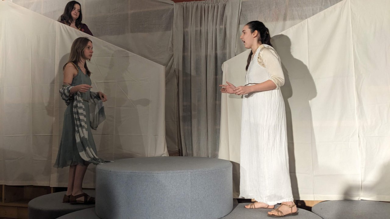 Am 18. und 19. Dezember 2024 wurde an unserer Schule die antike Tragödie „Antigone“ von Sophokles auf die Bühne gebracht. Die Schülerinnen widmeten sich mit großer Hingabe diesem zeitlosen Werk, das tiefgreifende Themen wie Gerechtigkeit, Moral und den Konflikt zwischen staatlichen Gesetzen und individuellem Gewissen behandelt. Diese hochaktuellen Fragestellungen regten nicht nur die Darstellenden selbst, sondern auch die Schülerinnen nachhaltig zum Nachdenken an.