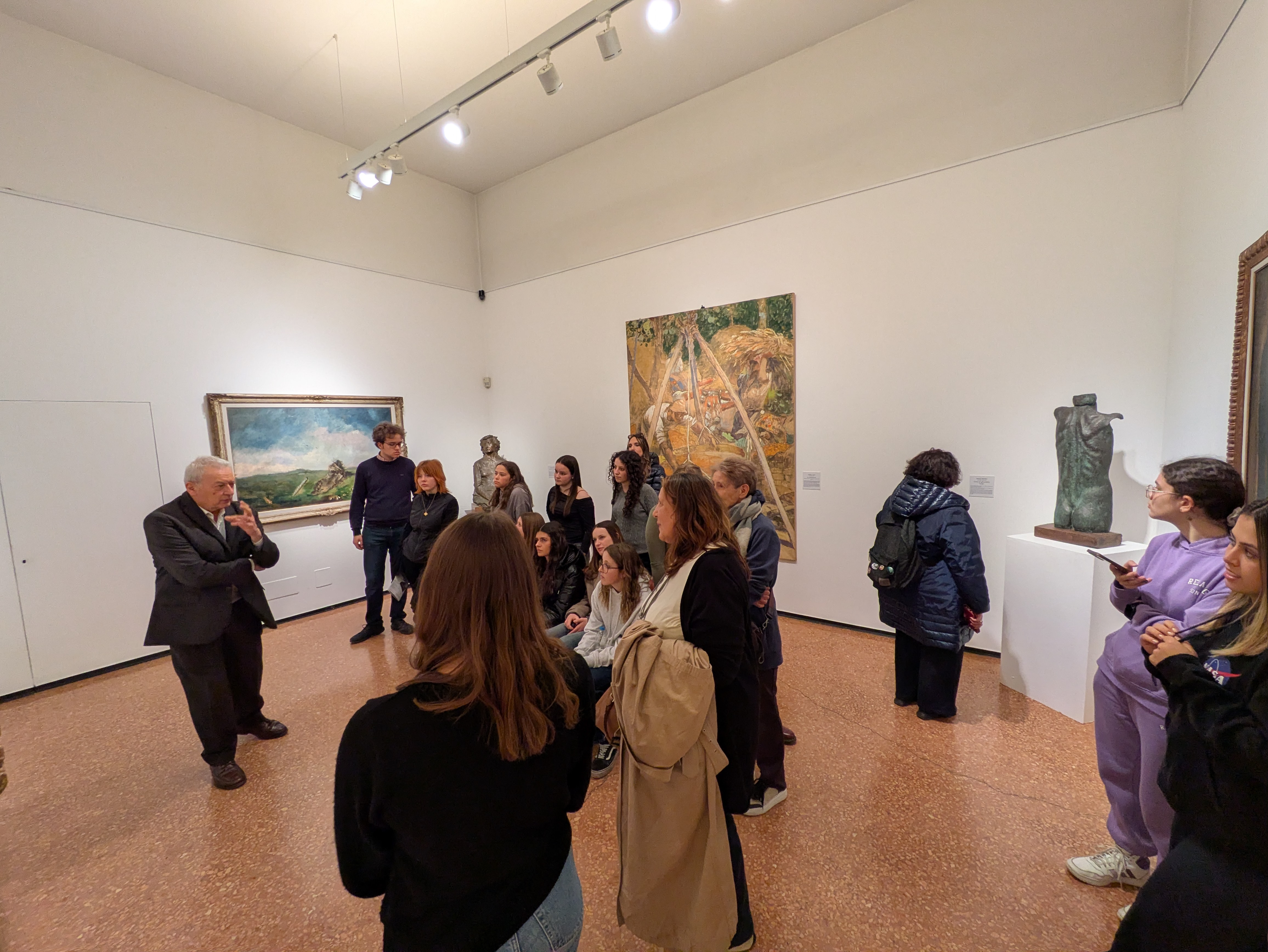 Der erste Programmpunkt war der Besuch des Palazzo Archiginnasio, der früher als Hauptgebäude der Universität Bologna diente. Besonders beeindruckend war das historische Teatro Anatomico, ein alter Anatomiesaal, in dem früher medizinische Vorlesungen und Sektionen stattfanden. Die kunstvolle Holzarchitektur und die besondere Atmosphäre dieses Raumes vermittelten einen eindrucksvollen Einblick in die Geschichte der Medizin und der Universität. Anschließend besuchten sie den Palazzo Fava, in dem eine Ausstellung über Banksy gezeigt wurde. Die Schülerinnen und Schüler erhielten dort einen Einblick in die Street-Art-Kunst und die gesellschaftskritischen Werke des berühmten, anonymen Künstlers. Danach ging es weiter zur Casa Saraceni, wo die Ausstellung zum Futurismus besucht wurde. Hier konnten sie Werke und Materialien aus dieser bedeutenden kunstgeschichtlichen Bewegung sehen und mehr über ihre Ideen von Dynamik, Technik und Moderne erfahren. Zum Abschluss der Exkursion stand der Besuch des Santuario della Madonna di San Luca auf dem Programm. Die Wallfahrtskirche oberhalb von Bologna bot nicht nur einen beeindruckenden architektonischen Eindruck, sondern auch einen weiten Blick über die Stadt, der den Tag stimmungsvoll abrundete. Der Ausflug nach Bologna war für die 5. Klasse eine bereichernde Erfahrung, die sowohl kulturelle als auch historische Einblicke bot und den Unterricht sinnvoll ergänzte. Die Klasse wurde von den Lehrpersonen Nora Veneri, Karin Spitaler sowie Sarah Fedrizzi begleitet.
