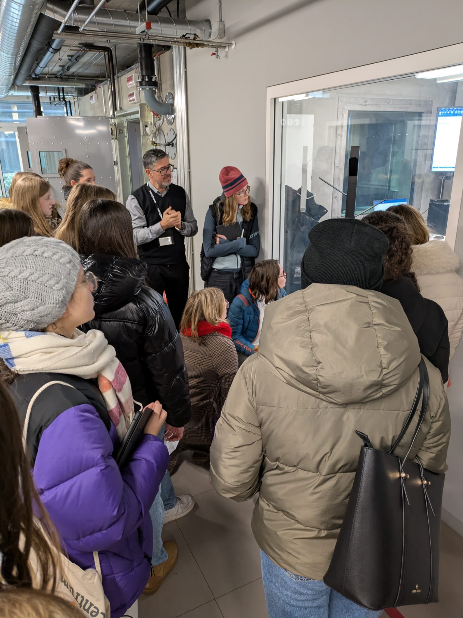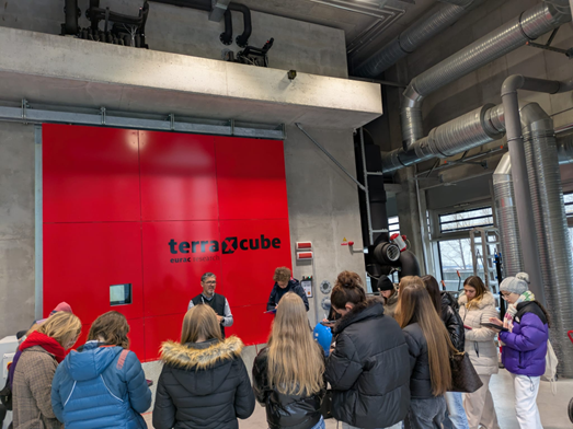 Die 5. Klasse des Maria Hueber Gymnasiums wollte sich diese technischen Besonderheiten näher erklären lassen. Der Leiter dieser Forschungseinrichtung, Christian Steurer führte die Klasse durch die faszinierenden Räumlichkeiten des terraXcubs.